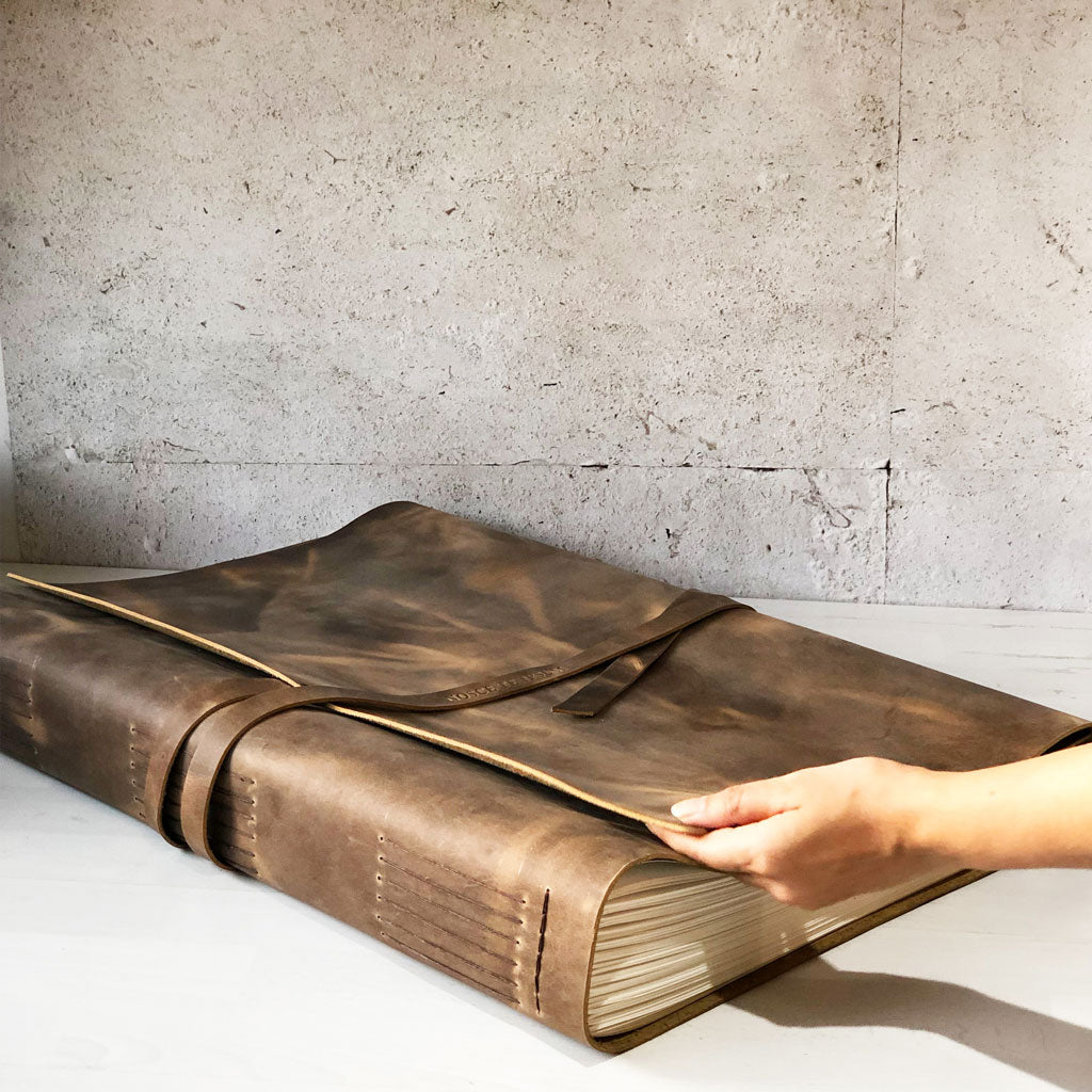 A2 sized giant scrapbook journal. A tome of epic proportions to hold wonders & wanderings & legacies. One of the largest books I make, bound entirely by hand with thick 220gsm paper pages that work well for scrapbooking or writing. Custom made to order in your choice of colours.