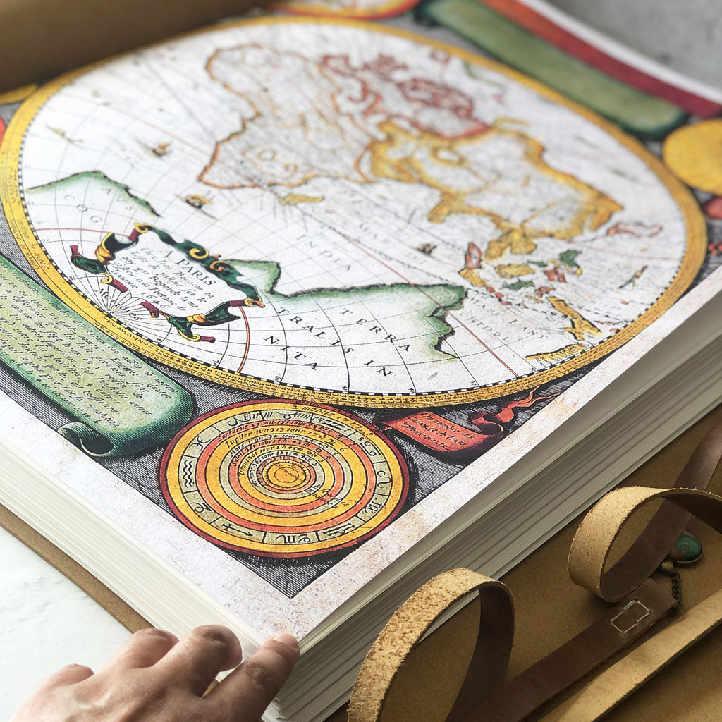 - 2 X Vintage world map sided pages at front of book using 1 whole world map - optional