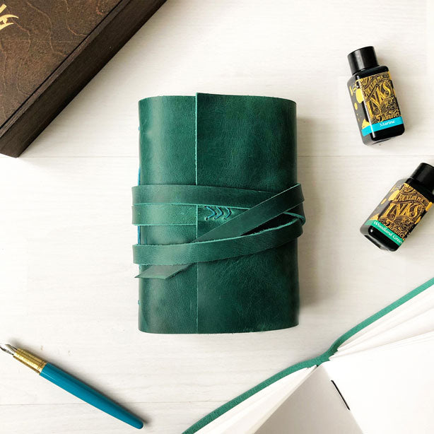 Finished with a classic leather wraparound tie, this journal is both a creative companion and a keepsake designed to inspire.