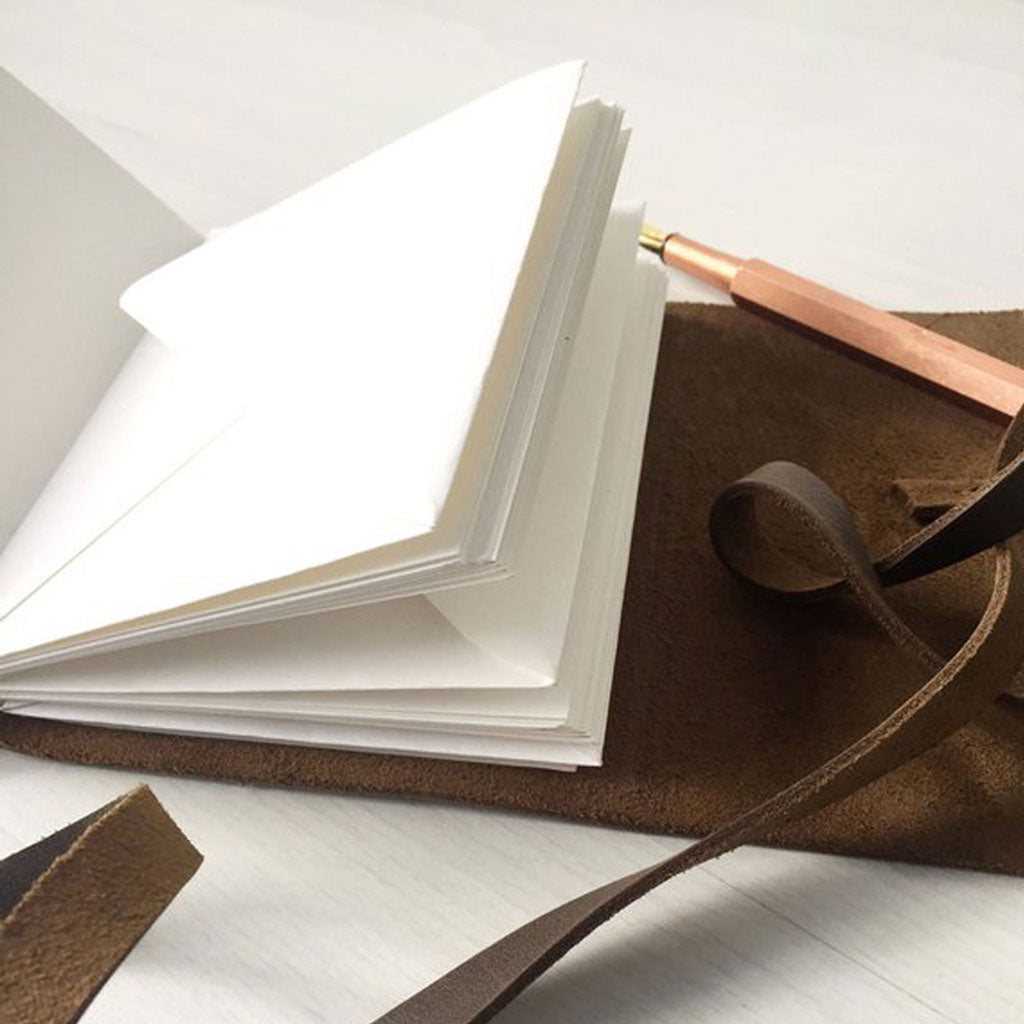 Each envelope is hand crafted and will be stitched into the leather journal of your choice.
