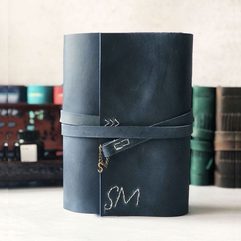 Totally unique and stitched with a quote or words of your choice onto the leather cover.