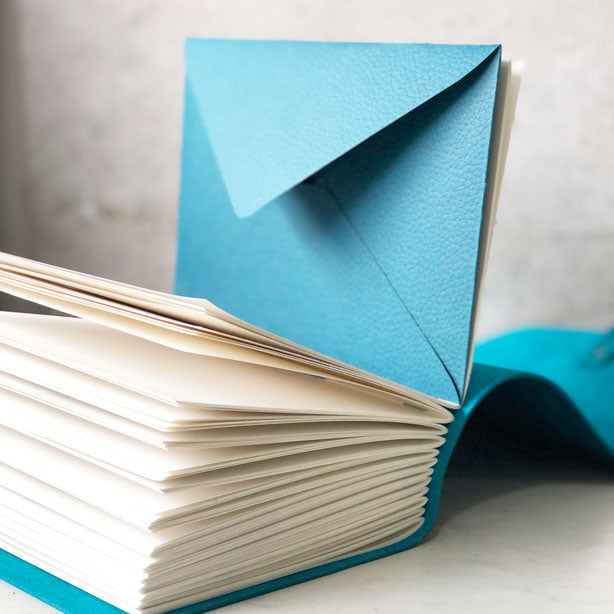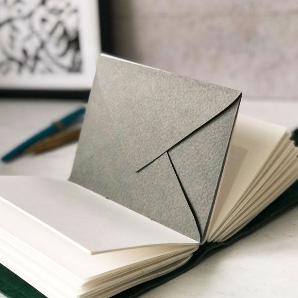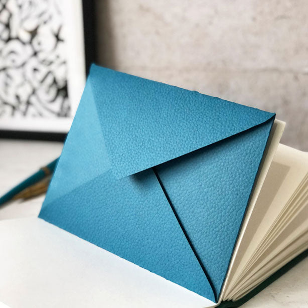 Each envelope is hand crafted and will be stitched into the leather journal of your choice.