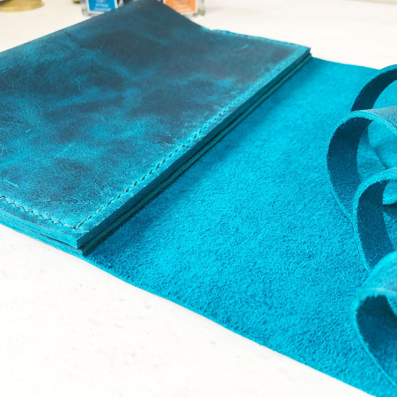 MAIN IMAGE SHOWN IS RUSTIC OCEAN BLUE LEATHER WITH TEAL THREAD