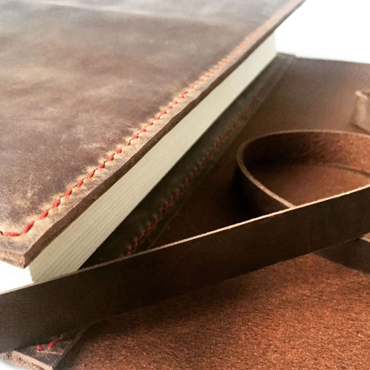 LEATHER COVER: Made from a waxy pull up leather that marks beautifully and just gets better with use and wear.