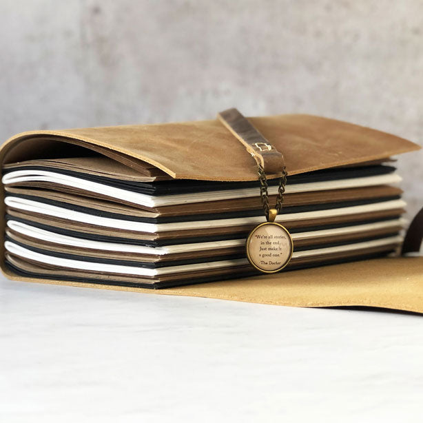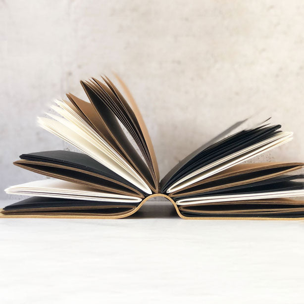 A one of a kind hand bound leather sketchbook journal made for creatives who love variety & colour. Filled with a beautiful mix of black, white and Kraft brown paper pages, this book offers a unique canvas for sketching, journaling, scrapbooking or experimenting with different media & moods. To make it even more special it features a unique globe charm attached to the wraparound tie strap , custom printed with a quote or words of of your choice, a daily reminder to stay inspired.