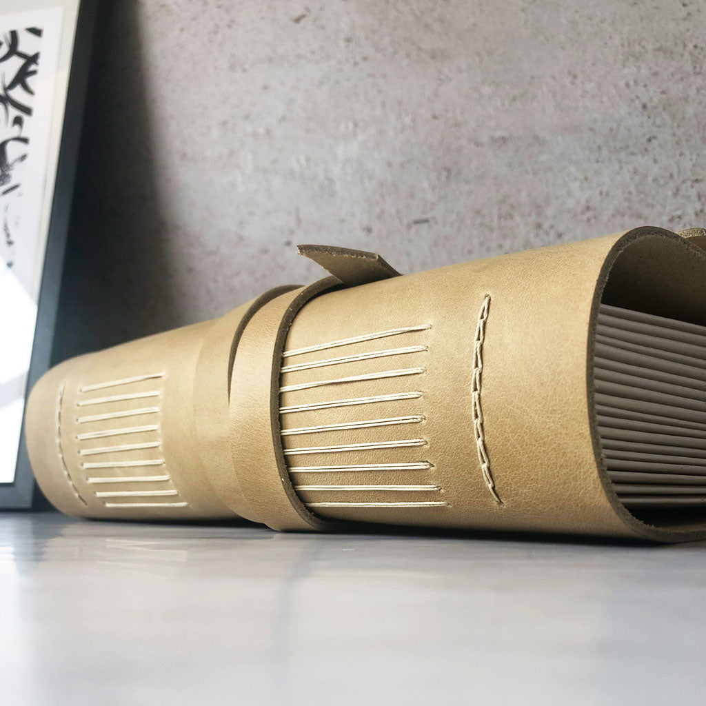 LEATHER COVER: Made from a waxy pull up leather that marks beautifully and just gets better with use and wear.