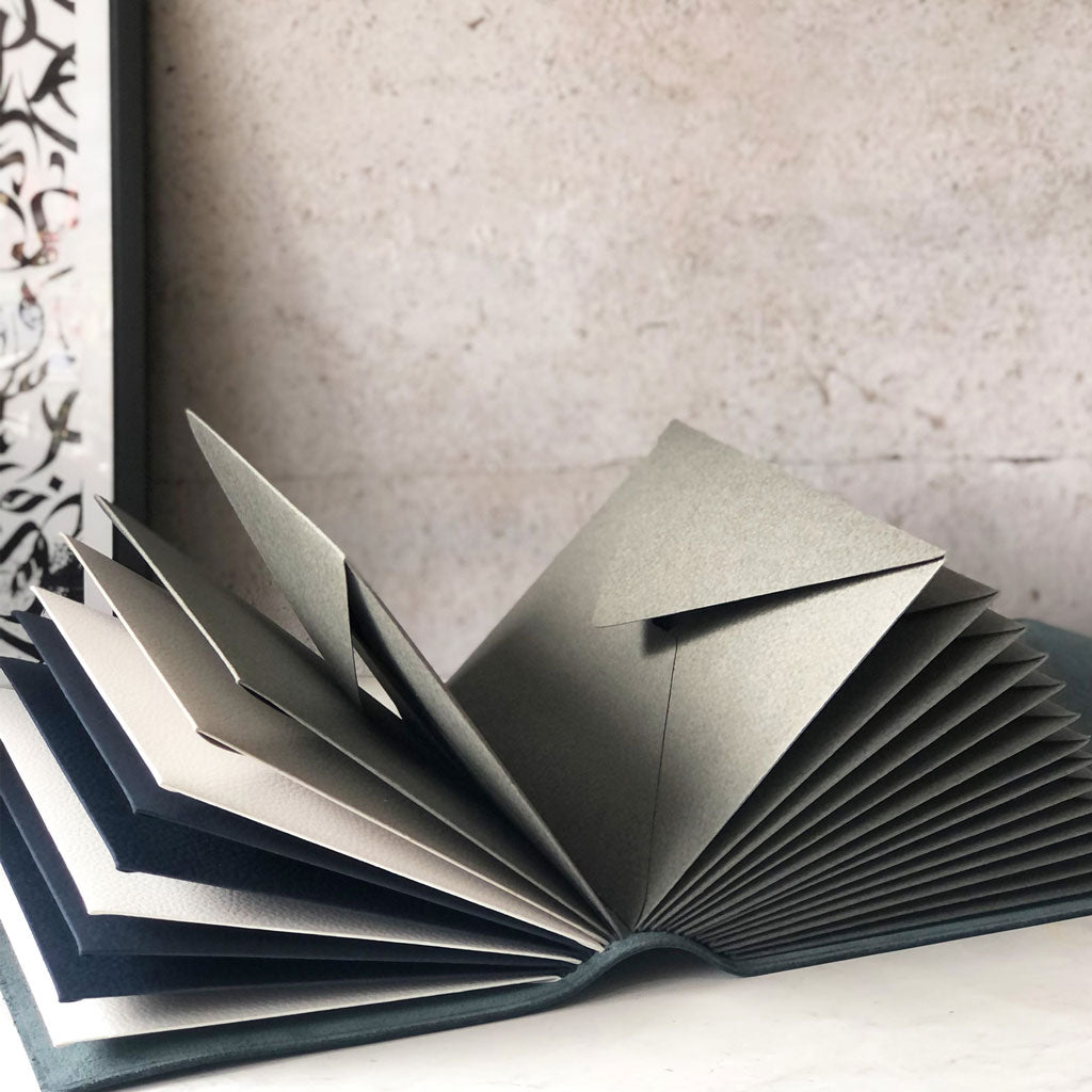 A leather bound memory book with pages made of envelopes all handmade using a luxurious leather look card. A beautiful sentimental keepsake gift that can be filled with notes and letters from family, friends and loved ones.