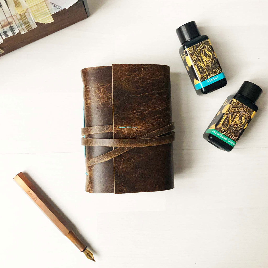 PAPER & BINDING: 140gsm acid free blank cartridge paper perfect for dry or wet media or simply just for writing, hand stitched into the leather cover using a waxed Irish linen thread.