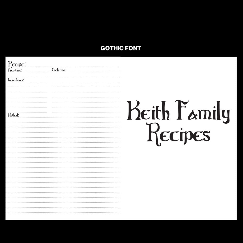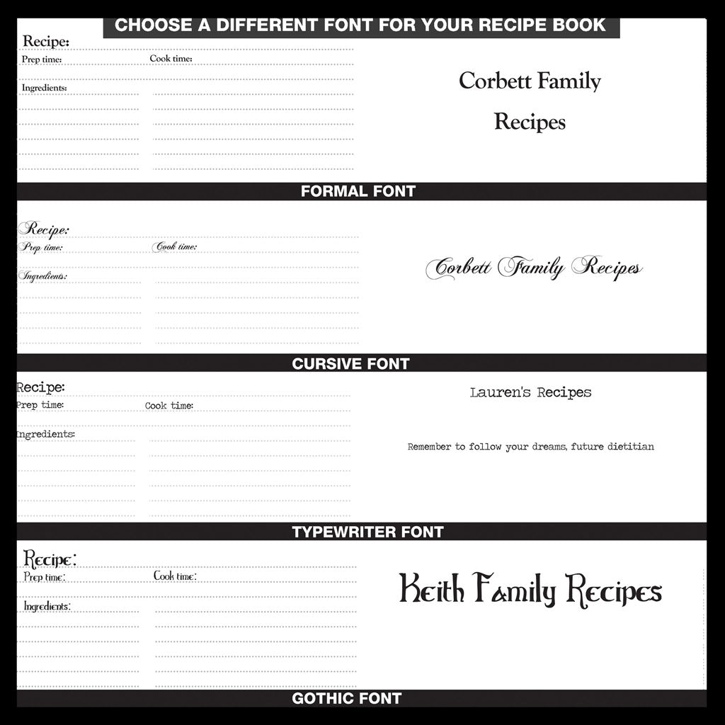 By purchasing this listing, you can select your font change and your recipe book will be printed in one of the options listed.
