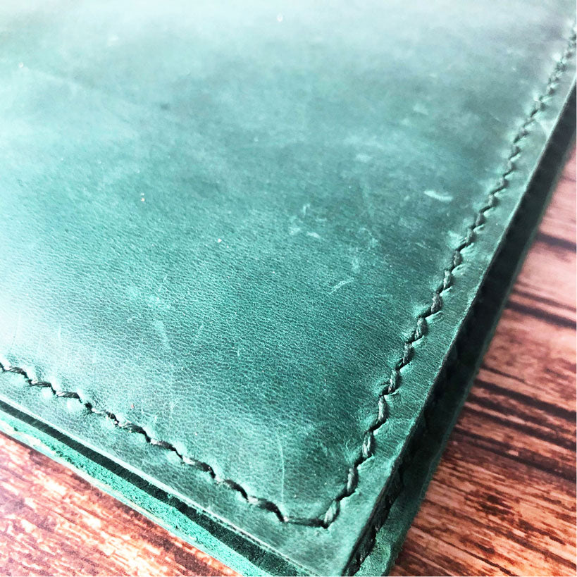 Main image shown is Emerald Green leather with Forest Green thread.
